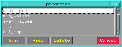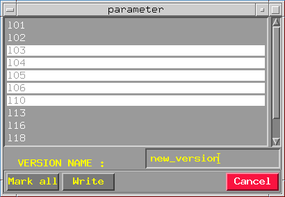 Names which are displayed in the list - are the names of all seismic sections existing in your 2-D project for which horizon, selected and loaded in HORAN - Start option ("Load horizon" option) was traced. User marks all sections he need, inputting version name ("new_version" - for example) and clicking on button "Write" runs the parameter calculating procedure. New parameter version will be wrote into "*.par" file for current horizon. This version and any other version can be send to griding module using HORAN - Grid version option.