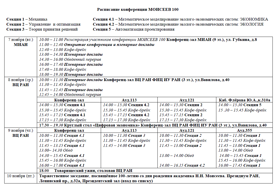8-9.11.17 Пленарные заседания и заседания секций пройдут в ВЦ АН ФИЦ ИУ РАН (ул. Вавилова, 40)