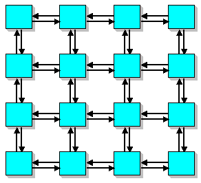 Такая архитектура с распределенной памятью часто упоминается как архитектура с параллелизмом данных(data-parallel), так как параллельность достигается при наличии одиночного потока команд, действующего одновременно на несколько частей данных. Сеть, соединяющая процессоры, обычно имеет регулярную топологию такую как конвейер или кольцо: