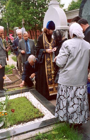 Автобус доставил всех желающих к могиле академика на кладбище у Новодевичьего монастыря.