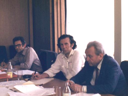 Участники заседания: Г.С. Поспелов - председатель международной РГ-22, К. Левитин - научный обозреватель журнала "Наука и жизнь",
