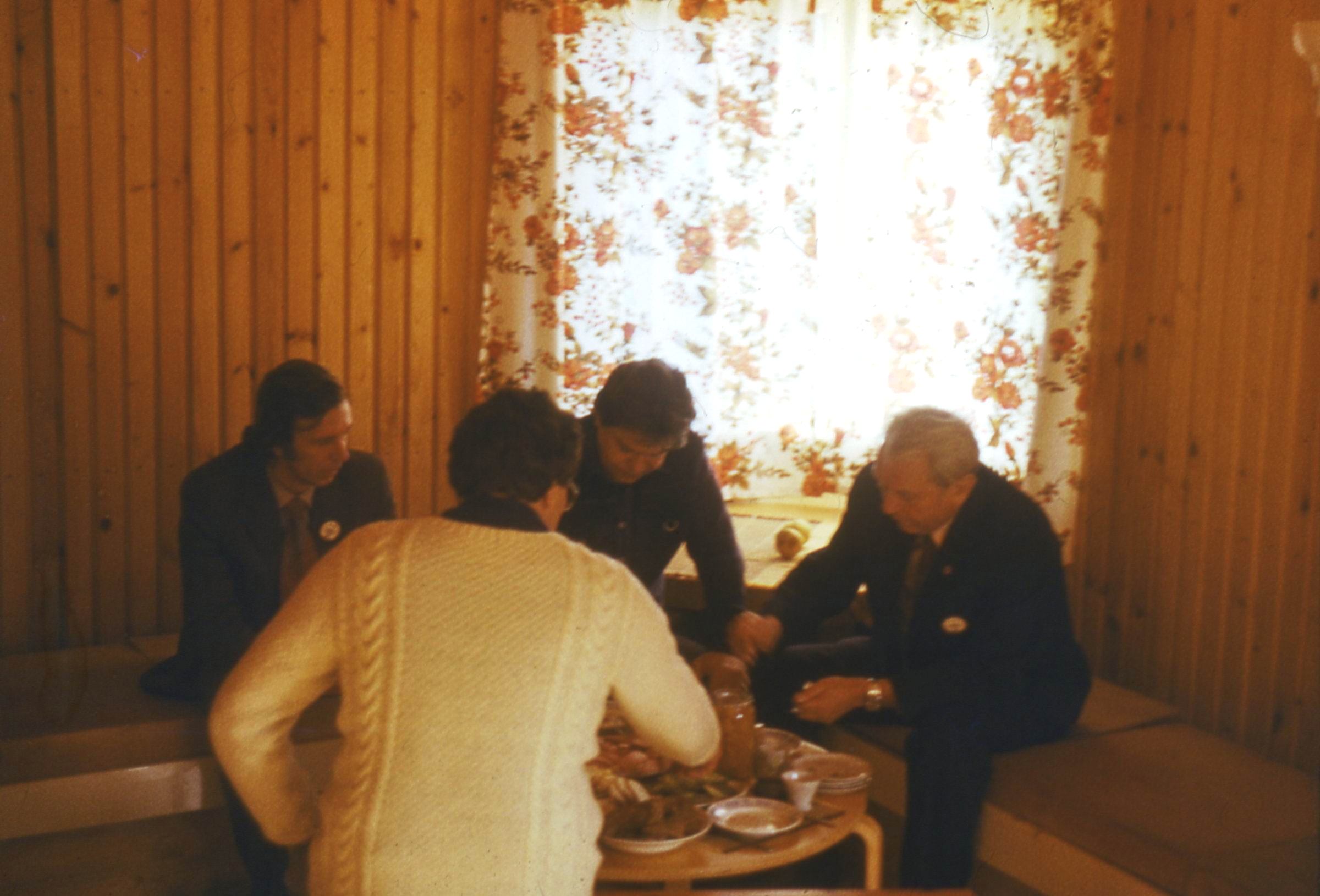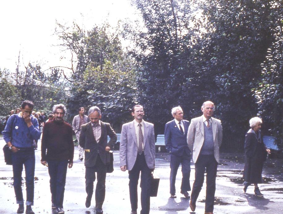 Во время экскурсии Г.С. Поспелов демонстрирует И. Пландеру (Словакия), как приходится сражаться с бюрократами,